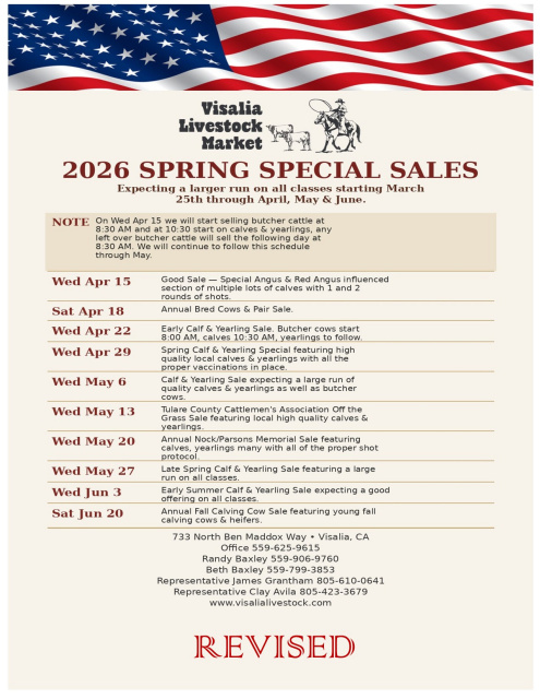Early calf & yearling sale...butcher cows start 8:30 AM, calves 10:30 AM, yearlings to follow